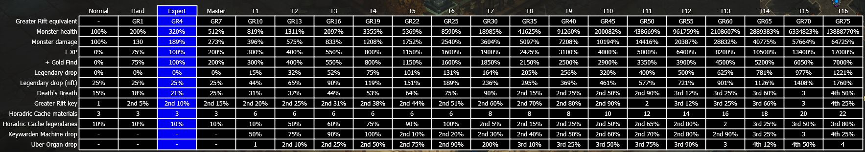 Time in rift/in town, items looted, average keys per