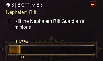 OBJECTIVES, time you are in game (Nephalem or Greater rift) and the percentage